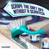 4.Comfortable Cleaning. Cant reach the corner of containers or pots with your old scrubber brush? Our kitchen scrub brush kit will change the situation for the better. Our kitchen dish brush with handle features an extra layer of bristles at the end of the brush so you could get to every corner of the pots to have them squeaky clean. Another brush features a built-in scraper to easily scrub away stuck-on, burned-on food or stains on your kitchen devices.