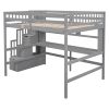 Full Size Loft Bed with Built-in Desk, Bookshelves and Storage Staircase