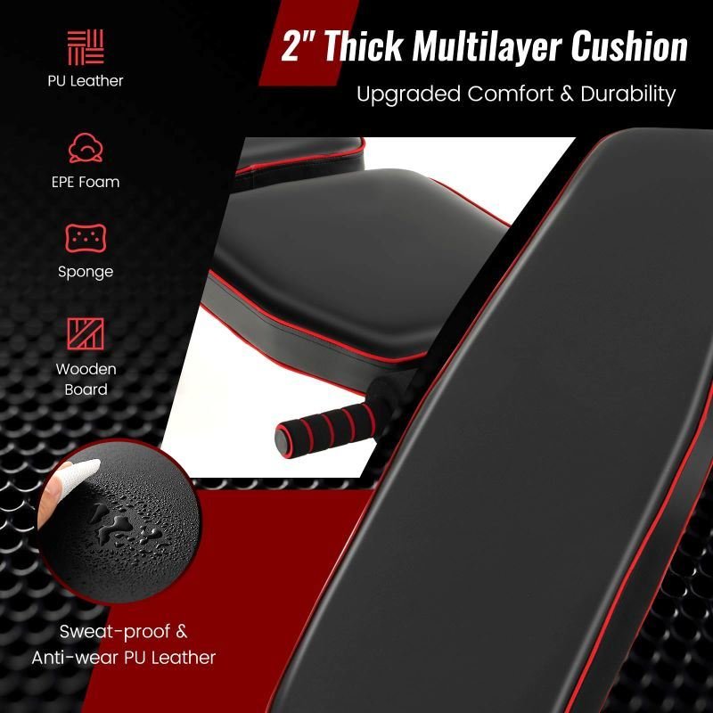 2.Made of heavy-duty metal pipes, the weight bench exerts great stability.